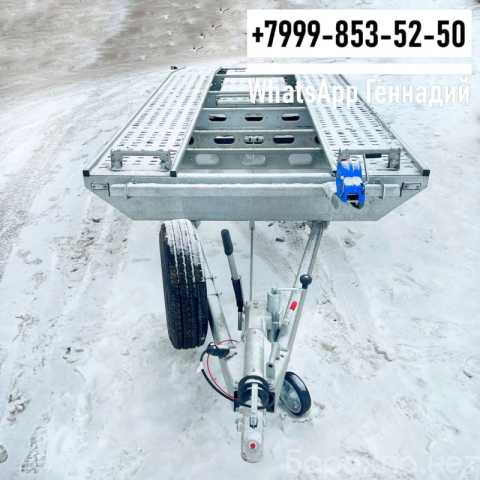 Специализированный двухосный прицеп с оцинкованной конструкцией от компании «МЗСА» для перевозки автомобилей. Представляет собой оцинкованную раму со стальным настилом, размер платформы 5100*2200 мм. Для заезда авто модель комплектуется оцинкованными стальными аппарелями для заезда, опорными стойками и оборудуется специальными отсеками для их перевозки. Прицеп имеет рессорную подвеску и тормоз наката.